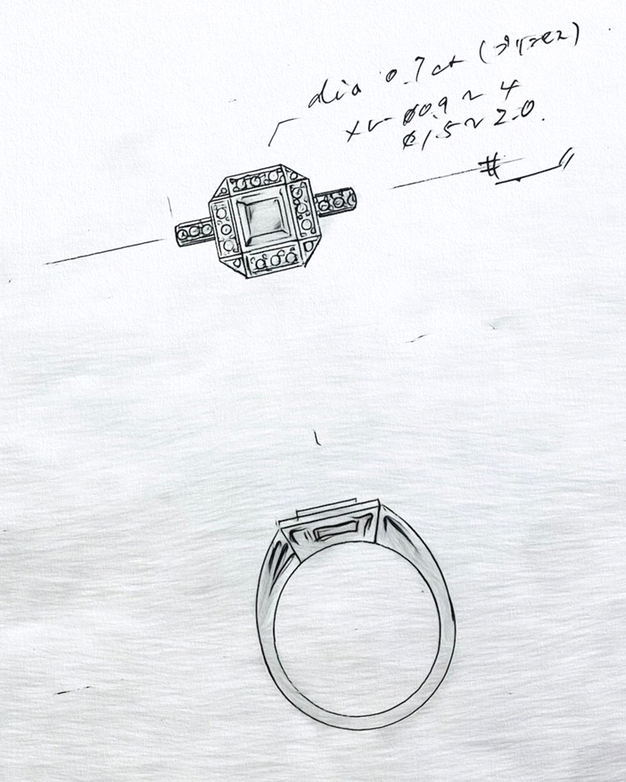 次にデザイン画を作成。シンプルなものから華やかなものまで、お客様の個性やストーリーを反映したご提案をいたします。納得いただけるまで調整を重ね、細部までこだわり抜いたデザインを決定。